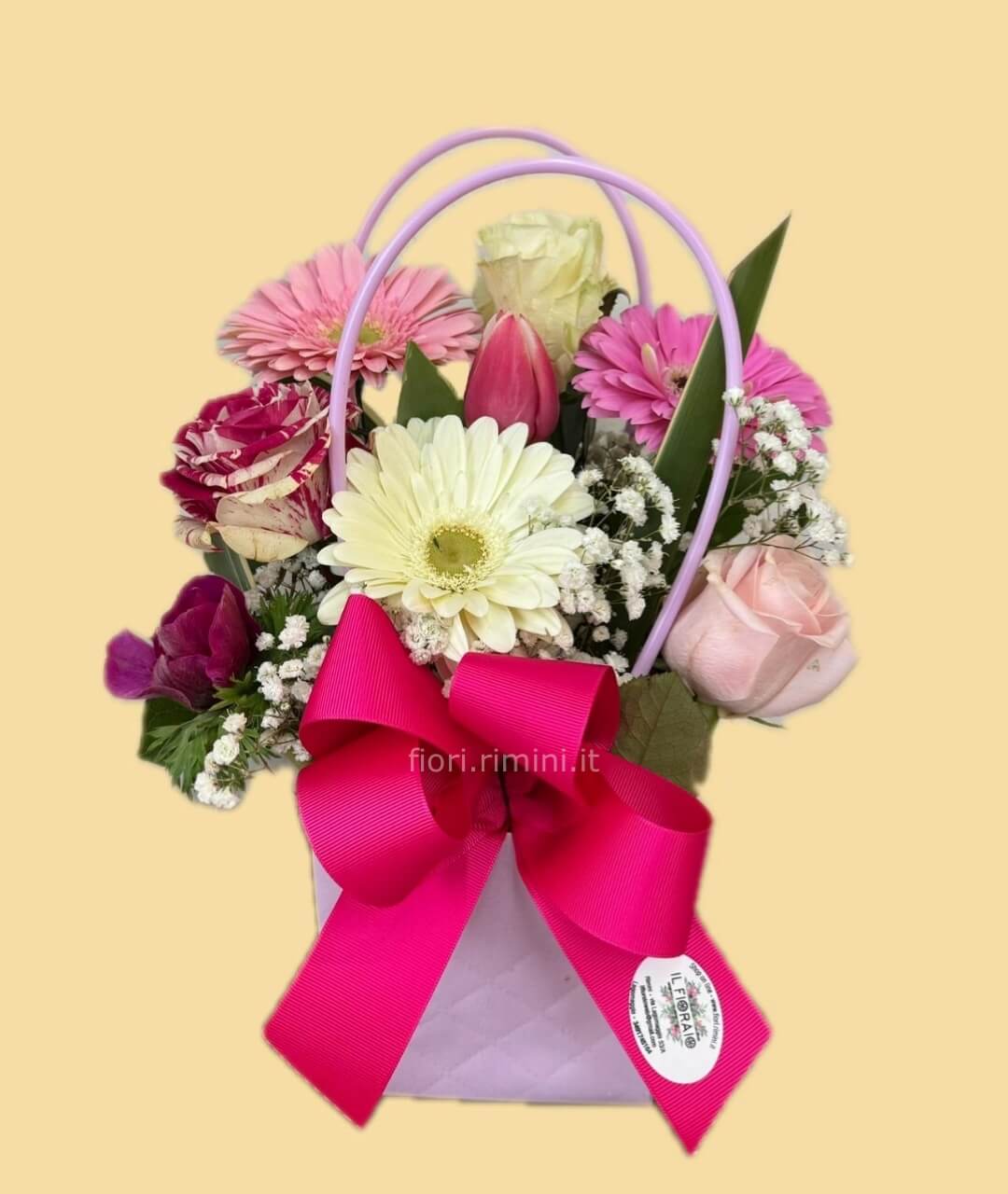 Borsetta con fiori mix rosa