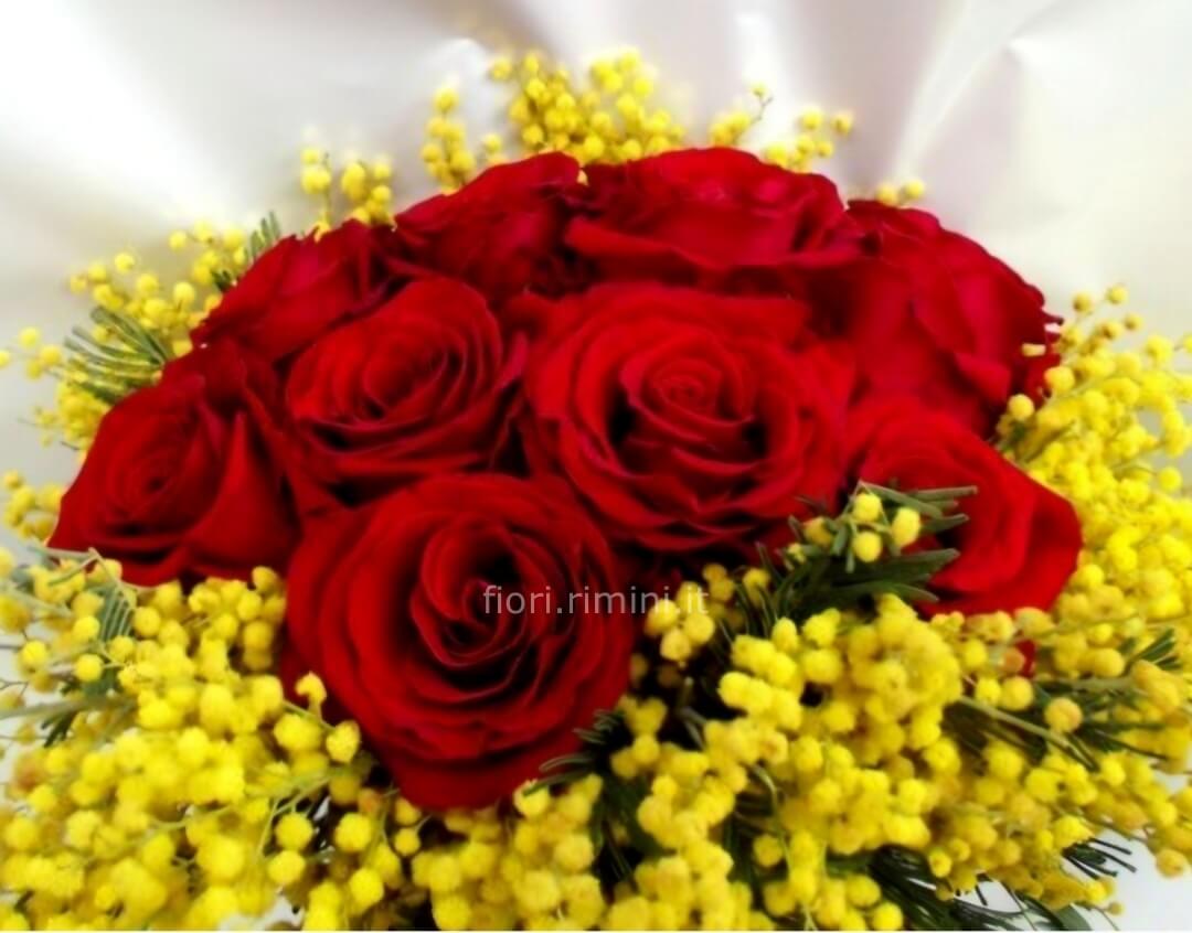 Ordina oggi il 'Bouquet di rose rosse compatte e mimosa' e rendi ogni momento indimenticabile!