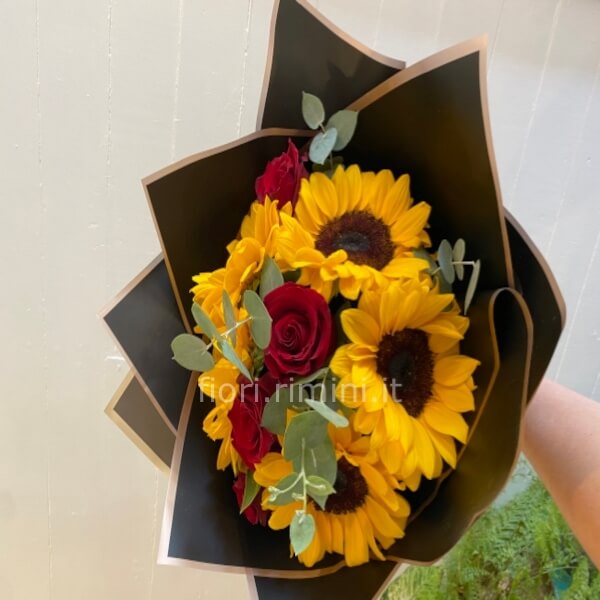 Il numero degli steli si intende solo peri girasoli e al centro una rosa rossa, come da foto